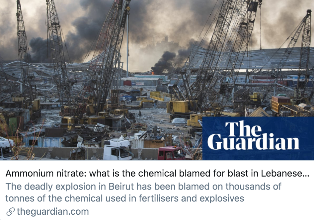 黎巴嫩首都爆炸事件应该归咎于什么化学物质?/ 《卫报》报道截图