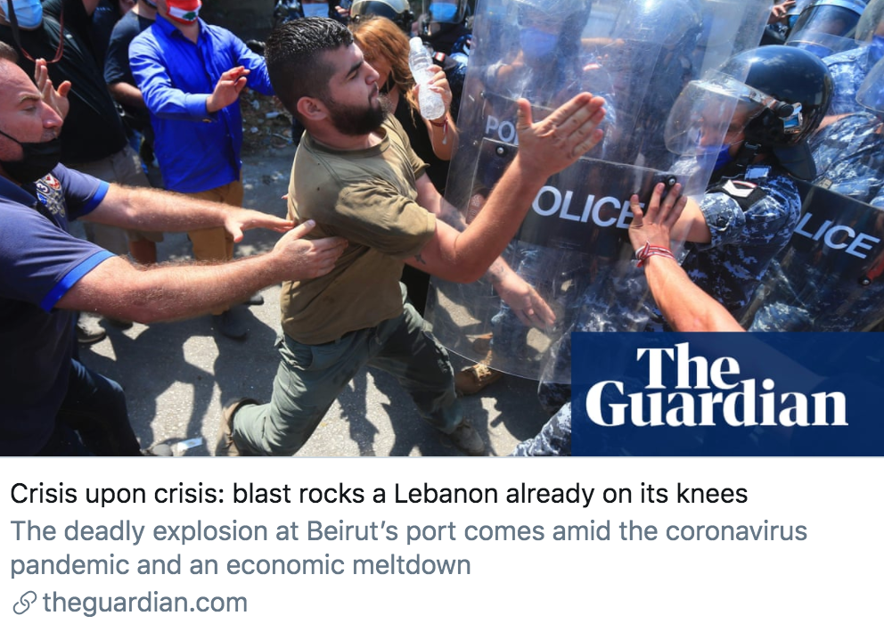 危机中的危机:爆炸使得黎巴嫩陷入瘫痪。/ 《卫报》报道截图