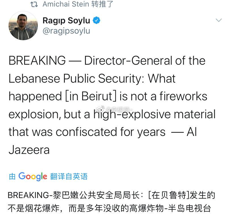 无论是何种原因,当务之急是救助伤者,让我们为黎巴嫩贝鲁特祈祷!