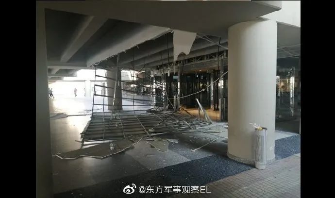 爆炸瞬间,一家商店的大门直接被摧毁。
