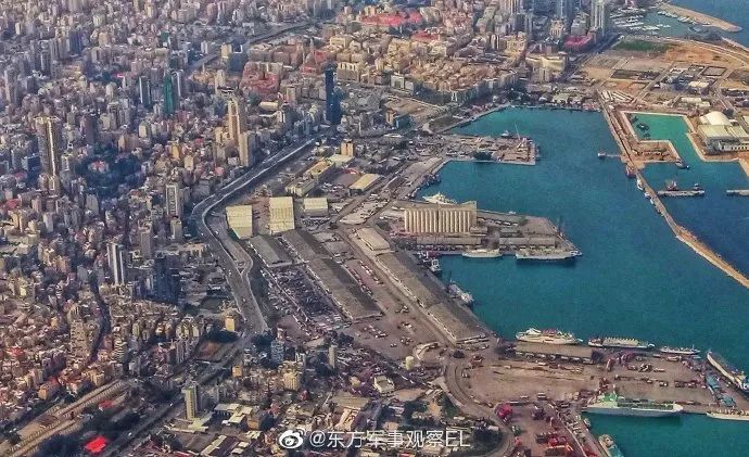 下图中间圆筒状仓库位置就是贝鲁特爆炸地点