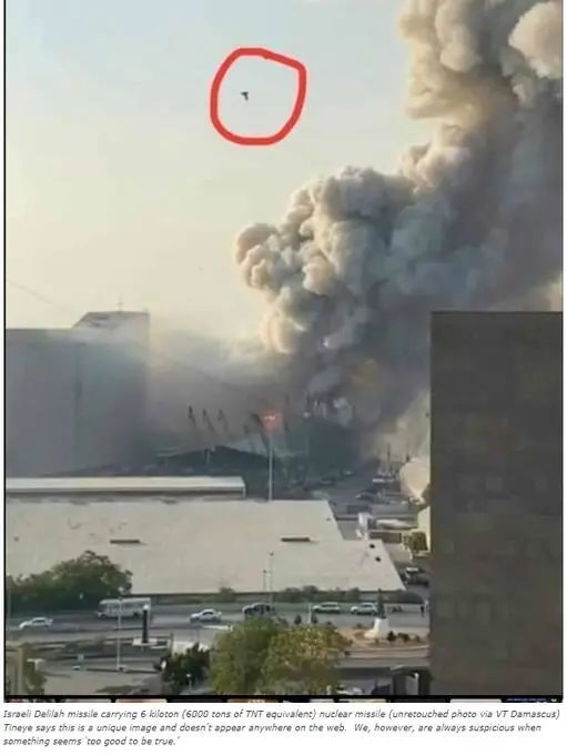 部分叙利亚网友认为,以色列使用了JSAAM空地导弹“袭击”了黎巴嫩贝鲁特,这款导弹经常被以色列空军用来袭击叙利亚境内的地面目标。