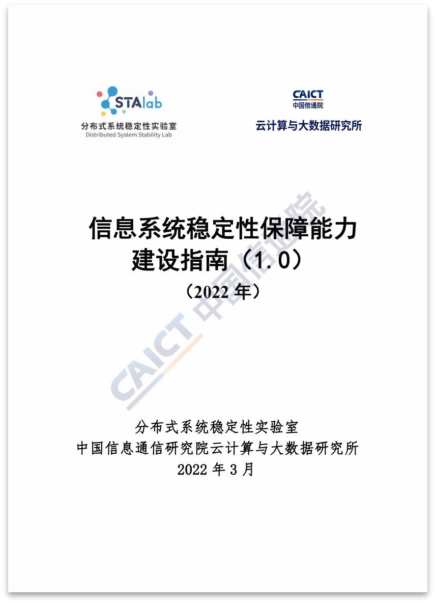 为帮助各行业完善信息系统的稳定性建设工作,中国信息通信研究院分布式系统稳定性实验室于近日正式发布了《信息系统稳定性保障能力建设指南(1.0)》,新炬网络作为主要编写单位深度参与了该指南的编写制定,同时作为国内稳定性服务供应商代表被收录其中。同时,新炬网络长期服务的电信运营商客户——浙江移动,也作为电信行业的信息系统稳定性最佳实践案例被收录进该指南。