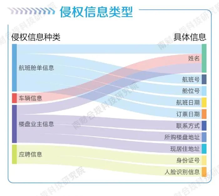 在目前已经公开详细案情的案例中,包含四类个人信息,即航班舱单信息、车辆信息、楼盘业主信息及应聘信息。