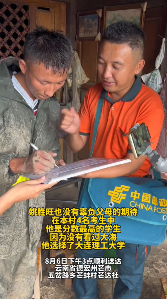 近日,大连理工大学2023级本科新生姚胜旺签收录取通知书的画面,引发热议。