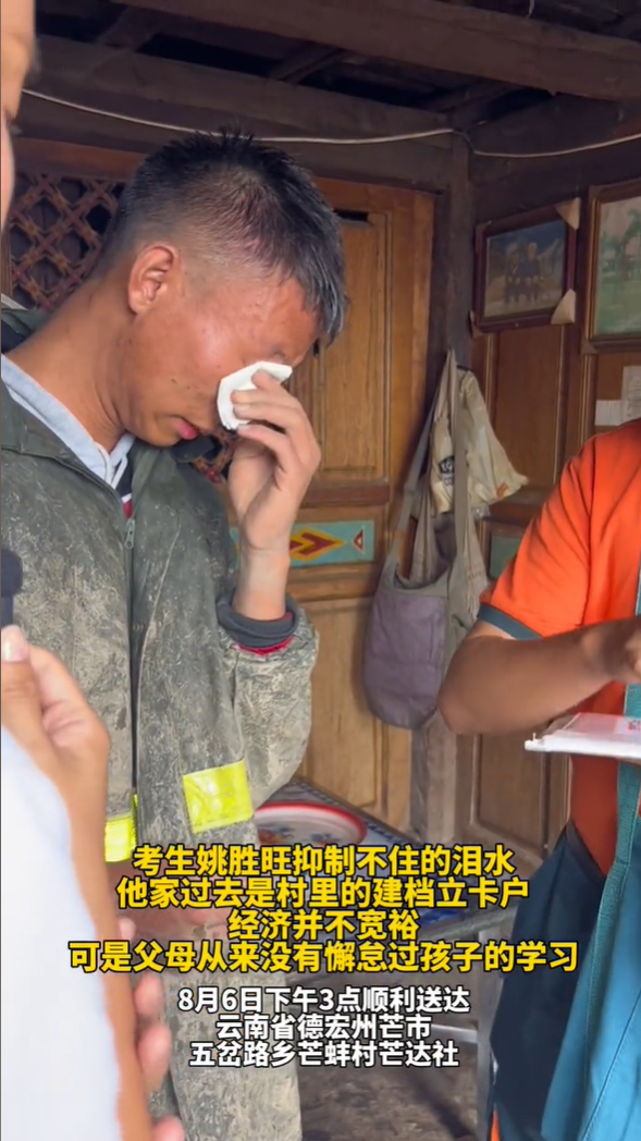 据了解,姚胜旺家住云南省德宏州芒市五岔路乡芒蚌村芒达社,家里有6口人,爷爷和父亲有肢体残疾,母亲在外打零工。哥哥目前在芒市农业农村局做志愿者。